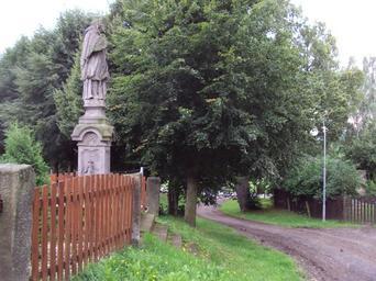 Keywords: Socha v Libchavě.jpg cs Socha před branou kostela sv Jakuba v Horní Libchavě own Zákupák 2010-08-19 Areál libchavského kostela Statues in Česká Lípa District