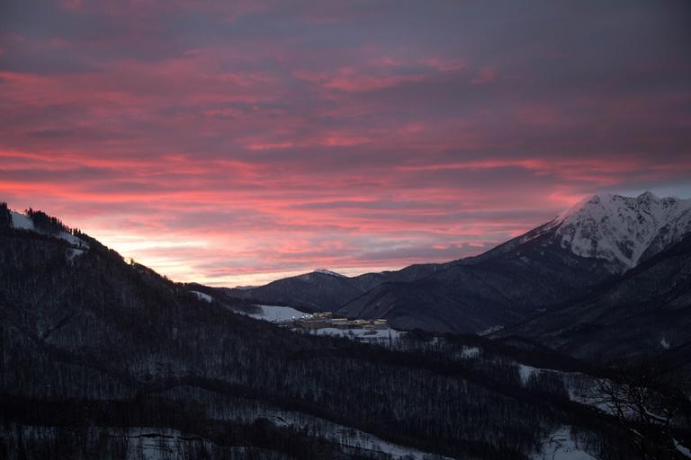 Keywords: sochi mountain sunset evening look pink clouds stage landscape winter
