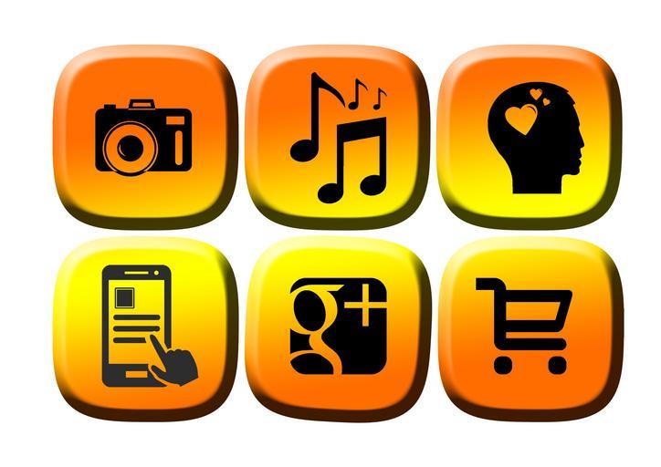 Keywords: social media button icon orange app photo music google plus love mobile phone touch screen shopping cart shopping basket online shop