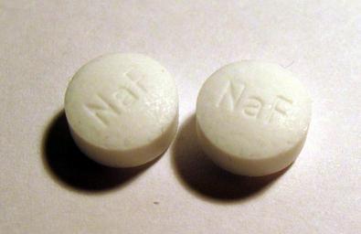 Keywords: Sodium fluoride tablets.jpg Tablets of sodium fluoride used for cavity prevention own 2007-01-20 Mysid Sodium fluoride