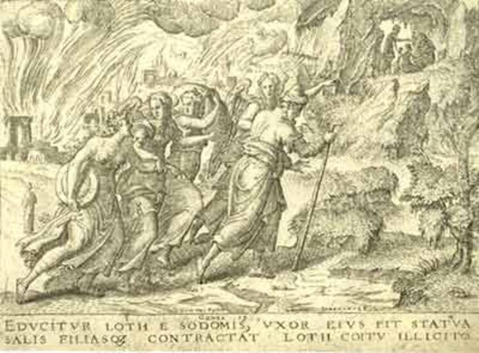 Keywords: Sodoma de Laune.jpg Etienne de Laune 1518-1583 Educitur Loth e Sodomis Incisione PD-old Lot flees as Sodom burns 1550s Sodom burning in the background 1550s Lot's wife made into a pillar of salt 1550s 16th-century engravings Latin inscriptions Etienne de Laune |