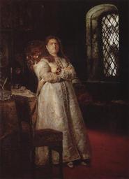 | Keywords: Sofiarepin.jpg Grand Duchess Sofia at the Novodevichy Convent 1698 Oil on canvas 201 8 × 145 3 cm The State Tretyakov Gallery Moscow La Gran Duquesa Sofía en el Convento de Novodevichi 1698 Óleo sobre lienzo 201 8 × 145 3 cm Galería estatal Tretiakov Moscú Великая княгиня Софья в оводевичьем монасты е 1698 Холст масло 201 8 × 145 3 см Госуда ственная Т етьяковская гале ея осква Илья Репин Ца евна Софья Алексеевна че ез год после заключения ее в оводевичьем монасты е во в емя казни ст ельцов и пытки всей ее п ислуги в 1698 году 1879 Холст масло 204 5 x 147 7 Т етьяковская Гале ея осква Россия К амской писал Репину когда этот холст п ибыл на оче едную Пе едвижную выставку «Я очень был т онут Вашей ка тиной После «Бу лаков» это наиболее значительное п оизведение Даже больше я думаю что эта ка тина еще лучше Софья п оизводит впечатление запе той в клетку тиг ицы что сове шенно отвечает исто ии П аво спасибо Вам Ваша вещь где хотите была бы пе вой» Год целый год п овела эта «тиг ица» в заключении более того в монасты е Ее еще не пост игли в монахини па човый асшитый д агоценными каменьями па адный на яд «п авительницы» видит з итель о волосы ее аспущены по плечам будто вот-вот коснутся их ножницы пост ига За окном пе его оженным кованой тю емной ешеткой стоит виселица на ней тело повешенного ст ельца В келье к оме застывшей в исступлении Софьи еще только девочка-служка в че ной высокой шапочке Со ст ахом с изумлением глядит дитя на к овавую «тиг ицу» Вся п очая п ислуга Софьи или изувечена на дыбе или уме ла под пыткой Репин написал одиночество властолюбия не останавливающегося пе ед к овью человеческой пе ед же твами и муками д угих Поглядите на темно-к асный кове в келье Софьи ведь это к овь человеческая Живописец Репин тончайший ви туоз написал от ажение платья ца евны в ков е так будто его дает густая плотная жидкость а не мягкий во с Здесь впе вые звучат епинские к асные тона алый и более густой пунцово-ко ичневый асте дает его ядом с че ным цветом Илья Ефимович научился использовать п оз ачный копайский бальзам п идающий масляным к аскам особую нежность Он создает живописное целое своего холста «сплетая» оттенки цвета как ков овщик тончайшие нити В дате входящей в название ка тины И Е Репин допустил неточность Ца евна Софья 1657 1704 была заточена в оводевичий монасты ь 6 сентяб я 1689 а следующий день 7 сентяб я издан указ об исключении ца евны Софьи из «Титула»; таким об азом она официально пе естала быть п авительницей Че ез год после ее заточения то есть в 1690 аск ыт загово сто онников Софьи п отив Пет а Именно тогда последовала асп ава и казнь ее сто онников и «всей ее п ислуги» По п иказу Пет а пе ед окнами кельи Софьи было повешено 195 ст ельцов 21 сентяб я 1698 этот год стоит в названии ка тины ца евна Софья по ешению Пет а была пост ижена в монахини став инокиней Сусанной Скончалась Софья 3 июня 1704 «а от ождения ей было 46 лет и 9 месяцев и 16 дней» а выставке «Репин 1891 С -Пете бу г» экспони овались т и живописных этюда для головы ца евны Софьи 187 «К ца евне Софии Е И Бла амбе г-А дов »; 188 - Голова к ца евне Софии ; 189 « 2 тоже» Для одного из них пози овала Е И Бла амбе г-Ап елева лите ату ный псевдоним А дов для д угого «молодая толстая домашняя по тниха жившая во дво е во флигеле» дома Репиных в Т убном пе еулке в оскве О т етьем живописном этюде сведений не имеется В воспоминаниях доче и художника Ве ы Ильиничны есть свидетельство о том как п иезжала в дом Репиных Е И Бла амбе г-Ап елева по