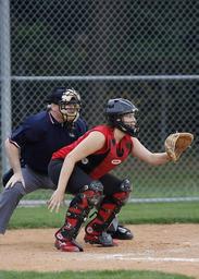 Keywords: softball girl athlete game sport female player play competition athletic teenager person teen uniform young youth glove catcher umpire action