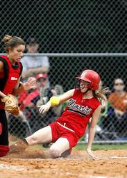 Keywords: softball girls athlete ball game sport female player field play competition athletic teenager catcher slide score runner outdoors competitive high school helmet active motion action run