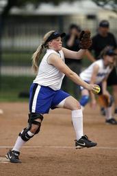 Keywords: softball pitcher player girl game competition field circle sport team ballgame female athlete young play uniform action pitching pitch throw ball glove