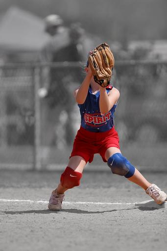 Keywords: softball player female game catch first base sport concentration catching play young glove outdoors summer park active