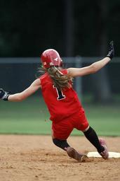 Keywords: softball player sliding base game competition athlete play female teenager ballgame young sport uniform runner helmet action