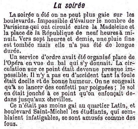 | Keywords: Soirée Mi-Carême 1895 3.jpg fr La soirée de la Mi-Carême à Paris extrait de l'article La Mi-Carême Le Petit Journal anonymous 1895-03-22 Domaine public Au moins une avec des taches et de moins bonne qualité Le Petit Journal Carnaval de Paris Mi-Carême au Carnaval de Paris 1895 Confetti 1895 PD-old 1895 Le Petit Journal |