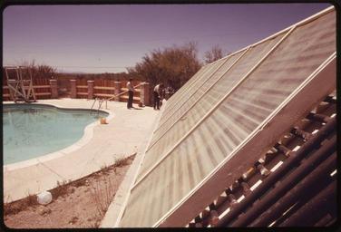 | Keywords: SOLAR HEATING PANELS USED TO HEAT A SWIMMING POOL AT A HOME OUTSIDE OF TUCSON, ARIZONA - NARA - 555342.jpg Scope and content General notes 555342 Local identifier 412-DA-12890 Environmental Protection Agency 12/02/1970 - NARA-Author Norton Boyd 1936- Photographer 1111093 <br /> Tucson Pima county Arizona United States North and Central America inhabited place 4203211 32 217 -110 92 <br /> Still Picture Records Section Special Media Archives Services Division NWCS-S National Archives at College Park 8601 Adelphi Road College Park MD 20740-6001 04/1974 Record group Record Group 412 Records of the Environmental Protection Agency 1944 - 2006 Record group ARC 708 DOCUMERICA The Environmental Protection Agency's Program to Photographically Document Subjects of Environmental Concern compiled 1972 - 1977 Series ARC 542493 File unit File unit ARC Variant control numbers Agency-Assigned Identifier 215/50/012890<br /> NAIL Control Number NWDNS-412-DA-12890 Other versions <gallery> File SOLAR_HEATING_PANELS_USED_TO_HEAT_A_SWIMMING_POOL_AT_A_HOME_OUTSIDE_OF_TUCSON _ARIZONA_-_NARA_-_555342 tif tif File SOLAR_HEATING_PANELS_USED_TO_HEAT_A_SWIMMING_POOL_AT_A_HOME_OUTSIDE_OF_TUCSON _ARIZONA_-_NARA_-_555342 jpg jpg </gallery> NARA-cooperation PD-USGov Solar energy in the United States |
