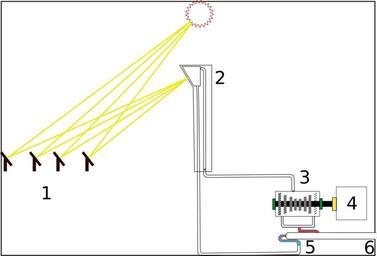 Keywords: Solartorre sincolor.svg es Esquema de una central termosolar de torre 1 heliostatos; 2 caldera; 3 turbina de vapor; 4 alternador; 5 condensador; 6 agua de refrigeración Sin colores 2013-11-07 Commons Derivate File Solartorre svg User MdeVicente other versions cc-zero Uploaded with UploadWizard Solar tower power plants
