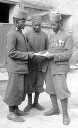 | Keywords: Soldats marocains tenant une main de Fatma 1915.jpg fr Soldats marocains tenant une khamsa ou « main de Fatma » en 1915 en Moroccan soldiers holding a hamsa or hand of Fatima in 1915 ark /12148/btv1b6908628g Creator Agence Rol 1915 PD Copyright domaine public PD-old Troupes coloniales Khamsa World War I forces of France Black and white portrait photographs of military people in uniform Puttees Agence Rol | ||||