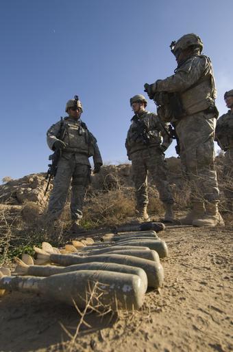 Keywords: Soldiers in Baqubah DVIDS142513.jpg en U S Army Staff Sgt Gersain Garcia gives information to the Weapons Inspection Team members about a weapons cache his platoon found U S Soldiers from the Chemical Biological Radiation Nuclear/Weapons Intelligence Team Platoon Brigade Troops Battalion 1st Stryker Brigade Combat Team 25th Infantry Division are exploiting a weapons cache found by fellow 25th Infantry Division Soldiers while conducting a patrol south of Baqubah Iraq on Jan 3 2009-01-03 left https //www dvidshub net/image/142513 090103-N-+++++-013 2009-01-08 19 33 BAQUBAH IQ PD-USGov-Military-Navy 25th Infantry Division United States Images from DoD uploaded by Fæ |