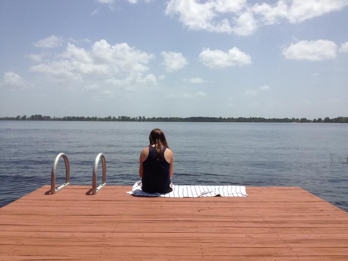 Keywords: solitude alone dock female girl lake pier thinking meditate