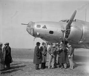 | Keywords: Solons inspect new Army Bomber 22357v.jpg photograph en Solons inspect new Army Bomber Washington D C March 10 Members of the House Military Affairs Committee with U S Chief of staff General Mailin Craig inspecting the new 4-Engine Boeing Bomber which arrived at Bolling Field today This ship is first of 13 which will be delivered to the Army Air Corps in the newer future In the photograph left to right can't be seen Rep Andrew Edmiston West Virginia; Rep Charles I Faddis Pa ; Capt C E O'Connor pilot of the ship; Rep Andrew J May Kentucky; Maj Gen Malin H Craig 1937 March 10 1 negative glass 4 x 5 in or smaller accession number LC-DIG-hec-22357 digital file from original negative Call Number LC-H22- D-1011 P P Title from unverified data received with the Harris Ewing Collection on the negative or negative sleeve Date year based on date of related adjacent negatives Gift; Harris Ewing Inc 1955 General information about the Harris Ewing Collection is available at http //hdl loc gov/loc pnp/pp hec Temp note Batch four LOC-image hec 22357 Harris Ewing Rights Advisory No known restrictions on publication <gallery> Solons_inspect_new_army_bomber_22357a tif tif </gallery> PD-Harris-Ewing Washington D C in the 1930s YB-17 Malin Craig Charles I Faddis Andrew J May 96th Bomb Squadron |