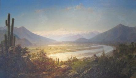 | Keywords: Somerscales - Valle de Acancagua 1881.jpg Artwork 1881 oil on canvas 74 x 126 cm Museo Municipal de Bellas Artes Valparaíso object history credit line Con el título Valle del Aconcagua está colgado en el Museo de Bellas Artes de Valparaíso; y con el de Crepúsculo del Aconcagua figura en el álbum Thomas Somerscales Pintor de célebres marinas y serenos paisajes publicado en 2008 por Origo Ediciones en su colección Pintura Chilena del Siglo XIX accession number Rodrigo Fernández Foto cc-by-sa-3 0 PD-old-auto 1927 Uploaded with UploadWizard Museo Municipal de Bellas Artes de Valparaíso Thomas Somerscales |