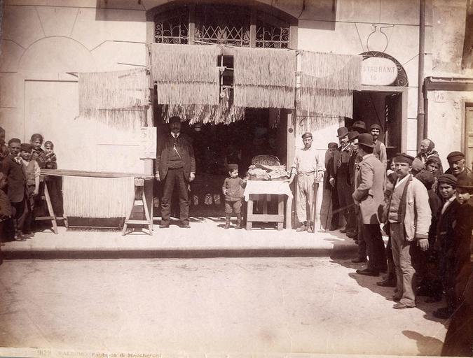 | Keywords: Sommer, Giorgio (1834-1914) - n. 9129 - Palermo - Fabbrica di maccheroni.jpg it Giorgio Sommer 1834-1914 Palermo Fabbrica di maccheroni Catalogue number 9129 Nota al giorno oggi in gran parte d'Italia definiremmmo piuttosto bucatini quel tipo di pasta en Giorgio Sommer 1834-1914 Palermo Macaroni maker Catalogue number 9129 scan Creator Giorgio Sommer PD-old-100 Historical images of Palermo by Giorgio Sommer 9129 Historical images of people of Sicily 1914 before Pasta making Fabbrica di maccheroni 1900s |