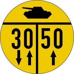 | Keywords: Sonderschild für Fahrbahnbreiten (zweispuriger Verkehr), Kettenfahrzeuge, alternatives Sinnbild, STANAG 2010.svg de Sonderschild für Fahrbahnbreiten b ‰¥ 5 50 m zweispuriger Verkehr Kettenfahrzeuge Das damalige Bundesministerium für Verteidigung führte 1961 Beschilderungsrichtlinien nach STANAG 2010 ein welche die militärischen Tragfähigkeit von befahrbaren Bauwerken regelte Das Sinnbild žPanzer zeigt eine neuere Version Das Schild sollte einen Durchmesser von ‰¥ 51 cm haben Ab 1993 wurden die diese Zeichen auf Autobahnen abgebaut Seit 2009 ordnet das Bundesverteidigungsministerium die Beschilderung nicht mehr an Fristen für den Abbau sind nicht ausgegeben worden Farbton des Schildes RAL-Verkehrsgelb Nicht in der StVO aufgeführt aber vom Bundesverkehrsministerium veröffentlichtes Zeichen own selbst gezeichnet von Mediatus Mediatus 23 August 2015 Herstellungsdatum v User Mediatus/no-new-version Cc-zero PD-GermanGov Diagrams of historic road signs of Germany 1992 set Diagrams of military road signs of Germany SVG road signs in Germany Military Load Classification Markings STANAG 2010 |