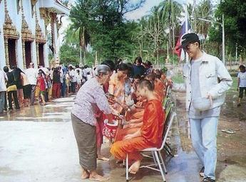 | Keywords: Songkran in Wat Kungthapao.jpg Photo by User Tevaprapas 2000 ประ พณีสรงน้ำพระภิกษุ วัดคุ้งตะ ภา ตำบลคุ้งตะ ภา อำ ภอ มือง จังหวัดอุตรดิตถ์ the tradition takes a bath the monk in the Songkran Thailand Uttaradit 2000 Own work own 2000 80px 100px Songkran in Wat Khung Taphao |