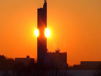 | Keywords: sonnenkugel heat fiery sunset cut in half afterglow sky orange glow farbenspiel farbenpracht natural phenomenon half grain silo schapfe mill flour mill jungingen ulm swabian alb highest grain silo world record record german architecture award architecture building silo memory tower yellow sau |