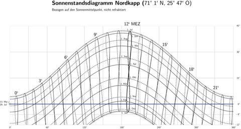 Keywords: Sonnenstandsdiagramm nordkapp.svg de Sonnenstandsdiagramm für das Nordkapp own Schletz 2010-08-09 Sun charts North Cape Mean meteorological data of Norway Polar climate Meteorologisk institutt