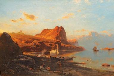 | Keywords: Sonnenuntergang über Cap San Vicente auf Madeira by Eduard Hildebrandt (1849).jpg Artwork oil on canvas cm 80 24 56 46 object history ProvenanceEvent 2007-11-03 sale Auktionhaus Stahl Hamburg 31 Kunst Sale 285 credit line signed and dated 'E Hildebrandt 1849' l l ; signed 'Prof Eduard Hildebrandt' and titled verso accession number http //www faz net/aktuell/feuilleton/kunstmarkt/auktionen/vorschau-heerlager-1490435 html PD-old-100 Files of Madeira uploaded by Darwinius Eduard Hildebrandt 1849 paintings 19th-century landscape paintings Paintings of seascapes with sunset Madeira in art Madeira in the 1840s 1849 in Portugal Sunsets of Madeira Coasts of Machico Porto da Cruz People of Madeira in art Fishermen from Madeira Beaches in Madeira Paintings of people at the beach People with boats in art Fishing boats in Madeira Fishing boats in art Machico in the 19th century Penha de Águia Sailboats at sunset People at the beach in Portugal Paintings of boats at the beach |