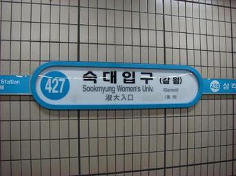 | Keywords: Sookmyungsta.jpg en Sookmyung Women's University Station 2007-11-27 Transferred from http //en wikipedia org en wikipedia Marcopolis at http //en wikipedia org en wikipedia Marcopolis Original upload log page en wikipedia Sookmyungsta jpg 2007-11-27 17 27 Marcopolis 788×591 107291 bytes Sookmyung Women's Univ Train stations in Yongsan-gu Seoul Seoul Subway Line 4 Train station signs in Seoul Subway line 4 | ||||