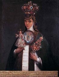 | Keywords: Sor María Antonia de la Purísima Concepción.jpg Mexico c 1777 Oil on canvas cm 105 81 Institution Museo Nacional del Virreinato http //www letraslibres com/revista/artes-y-medios/monjas-coronadas-una-exposicion-de-pintura-novohispana other versions <gallery>Coronadamonja jpg</gallery> PD-old-100 18th-century unidentified painters 1777c Museo Nacional del Virreinato Tepotzotlán Crowned Nuns Mexican colonial portraits 1777c 1777 portrait paintings F 18th-century oil portraits of standing women at half length 1777c 18th-century portrait paintings in Mexico 1777c Concepcionist |