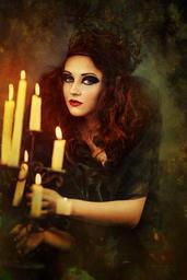 Keywords: sorceress fairy tales enchanted fee elf the witch woman person girl fairytale halloween crown candles candlestick scary makeup eyes vampire lips gotish