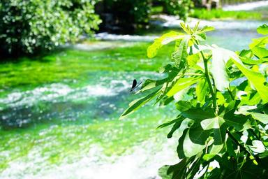 Keywords: sorgue water clear green blue shimmer frisch idyllic fontaine-de-vaucluse provence france