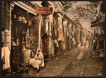 | Keywords: Souc-el-Trouk, Tunis, Tunisia WDL2507.png Artwork ru Сос-эль-Т ук г Тунис Тунис fr Souc-el-Trouk Tunis Tunisie en Souc-el-Trouk Tunis Tunisia zh Souc-el-Trouk,突尼斯,突尼斯市 pt Souci-el-Trouk Túnis Tunísia ar سوق التروك، تونس، تونس ru Этот цветной снимок относится к се ии Виды а хитекту ы и люди Туниса входящей в каталог компании Дет ойт Фотог афик Кампани а нем изоб ажен Сук-эль-Т ук или база в го оде Тунис Дет ойт Фотог афик Кампани была основана в конце1890 годов как издательская компания выпускающя фотоп одукцию бизнесменом из Дет ойта Уильямом А Ливингстоном младшим совместно с фотог афом и фотоиздателем Эдвином Г Хаше ом Они п иоб ели эксклюзивные п ава на использование п оцесса фотох оми ования изоб етенного в Швейца ии Фотох оми ование использовалось для п ев ащения че но-белых фотог афий в цветные и последующей печати фотог афий методом фотолитог афии Благода я этому п оцессу стало возможно массовое п оизводство цветных отк ыток снимков и альбомов для п одажи на аме иканском ынке <br>База ы; ужчины fr Ce cliché photochrome imprimé en 1899 provient du catalogue Regards sur l'architecture et la population en Tunisie de la Detroit Photographic Company Elle représente le Souc-el-Trouk ou encore le bazar de la ville de Tunis La Detroit Photographic Company est une entreprise d'édition photographique créée à la fin des années 1890 par un homme d'affaires et éditeur de Détroit William A Livingstone Jr et le photographe et photo-éditeur Edwin H Husher Ils obtinrent les droits exclusifs d'utilisation du processus suisse Photochrome pour la conversion de photographies noir et blanc en images couleur ainsi que leur impression par photolithographie Ce processus permit la production en série de cartes postales gravures et albums en couleur vendus sur le marché américain <br>Bazars; Hommes en This photochrome print from around 1899 is from Views of Architecture and People in Tunisia in the catalog of the Detroit Photographic Company It depicts the Souc-el-Trouk or bazaar in the city of Tunis The Detroit Photographic Company was launched as a photographic publishing firm in the late 1890s by Detroit businessman and publisher William A Livingstone Jr and photographer and photo-publisher Edwin H Husher They obtained the exclusive rights to use the Swiss Photochrom process for converting black-and-white photographs into color images and printing them by photolithography This process permitted the mass production of color postcards prints and albums for sale to the American market <br>Bazaars; Men zh 这张大约拍摄于 1899 年的彩色照片出自底特律摄影公司目录中 突尼斯建筑风光与人物 部分 照片描绘的是突尼斯市的 Souc-el-Trouk 或集市 底特律摄影公司是 19 世纪 90 年代 成立的 家摄影出版公司,创办人是底特律商人兼出版商小威廉·A· 利文斯 和摄影师兼照片出版商埃德温·H· 哈 尔 他们获得了瑞士 照片染色 工艺的独家使用 ,该工艺能够将黑白照片转成彩色图像, 且还能使用照相平版印刷法印刷这些图像 该工艺推动了大规模生产,使得向美国市 售彩色明信片 印刷品和相册成为可能 <br>集市; 男人 pt Esta impressão fotográfica de cerca de 1899 é de Panoramas de Arquitetura e Povo da Tunísia do catálogo da Detroit Photographic Company Retrata o Souc-el-Trouk ou bazar na cidade de Tunis A Detroit Photographic Company lançou-se como editora fotográfica no final de 1890 pelo empresário e editor de Detroit William A Livingstone Jr e pelo fotógrafo e editor de fotografia Edwin H Husher Eles obtiveram direitos exclusivos para utilizar o processo Photochrom suíço para conversão de fotografias em preto-e-branco em imagens coloridas e imprimí-las por fotolitografia Este processo permitiu a produção em massa de cartões postais coloridos gravuras e álbuns para serem colocados à venda no mercado americano <br>Bazares; Homens ar وردت هذه الطبعة الفوتوكرومية التي التقطت حوالي عام 1889 في مشاهد لناس ومواقع في تونس في كتالوج شركة ديترويت الفوتوغرافية وهي تصور سوق التروك، أو السوق، في مدينة تونس بدأ شركة ديترويت الفوتوغرافية كشركة لنشر التصوير الفوتوغرافي في أواخر التسعينات من القرن التاسع عشر كل من رجل الأعمال والناشر وليم أ لفنغستون، الابن، والمصور وناشر الصور إدوين ه هشر وقد حصلا على الحقوق الحصرية لاستخدام العملية الفوتوكرومية السويسرية لتحويل الصور بالأبيض والأسود إلى صور ملونة وطباعتها بالطباعة الحجرية التصويرية وقد أتاحت هذه العملية إمكانية الإنتاج الضخم من البطاقات البريدية الملونة، والصورالمطبوعة، والألبومات لبيعها في السوق الأمريكي <br>البازارات; الرجال es Esta impresión fotocroma de alrededor de 1899 pertenece a Vistas de la arquitectura y gentes de Túnez del catálogo de la Detroit Photographic Company Muestra