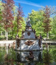 Keywords: source palace garden architecture lake pond trees madrid autumn water reflection blue sky peaceful peace