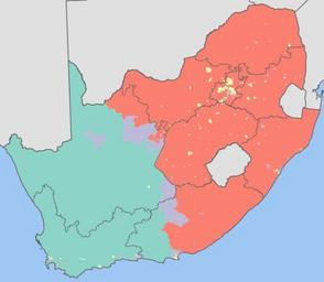 | Keywords: South Africa 2001 dominant population group map.svg fb8072 Black African 8dd3c7 Coloured 80b1d3 Indian or Asian ffffb3 White bebada No group dominant Projection is Albers Equal-Area Conic with standard parallels at 25 5° S and 31 5° S and origin at 28 5° S 25 5° E Statistics South Africa's Census 2001 is the source of the basic population data The map results from my own processing of the data Htonl 2010-02-07 Htonl The following license applies to the population data on which the map is based http //www statssa gov za/copyrightdisclaimer asp the user acknowledges Stats SA as the source of the basic data wherever they process apply utilise publish or distribute the data and also that they specify that the relevant application and analysis where applicable result from their own processing of the data The following tag applies to the map itself Superseded demographic maps of South Africa |