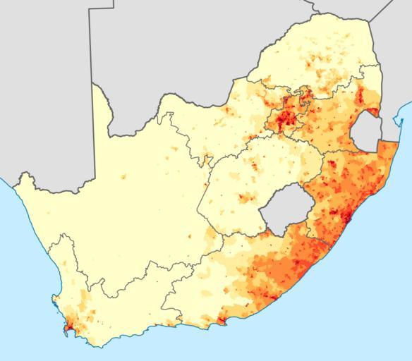 Keywords: South Africa 2011 Nguni speakers density map.svg ffffcc <1 speaker/km² ffeda0 1 “3 speakers/km² fed976 3 “10 speakers/km² feb24c 10 “30 speakers/km² fd8d3c 30 “100 speakers/km² fc4e2a 100 “300 speakers/km² e31a1c 300 “1000 speakers/km² bc0026 1000 “3000 speakers/km² 800026 >3000 speakers/km² Projection is Albers Equal-Area Conic with standard parallels at 25 5° S and 31 5° S and origin at 28 5° S 25 5° E Statistics South Africa's Census 2011 is the source of the basic population data The map results from my own processing of the data For ward boundaries see File South Africa electoral wards 2011 blank svg Htonl 2013-09-05 Linguistic maps of South Africa Maps with Albers projection Nguni languages Maps by Htonl The following license applies to the population data on which the map is based http //www statssa gov za/copyrightdisclaimer asp the user acknowledges Stats SA as the source of the basic data wherever they process apply utilise publish or distribute the data and also that they specify that the relevant application and analysis where applicable result from their own processing of the data The following applies to the map itself |