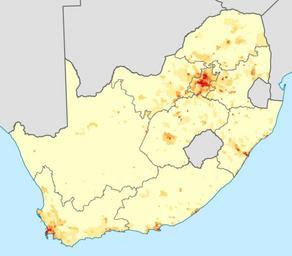 | Keywords: South Africa 2011 White population density map.svg ffffcc <1 person/km² ffeda0 1 “3 people/km² fed976 3 “10 people/km² feb24c 10 “30 people/km² fd8d3c 30 “100 people/km² fc4e2a 100 “300 people/km² e31a1c 300 “1000 people/km² bc0026 1000 “3000 people/km² 800026 >3000 people/km² Projection is Albers Equal-Area Conic with standard parallels at 25 5° S and 31 5° S and origin at 28 5° S 25 5° E Statistics South Africa's Census 2011 is the source of the basic population data The map results from my own processing of the data For ward boundaries see File South Africa electoral wards 2011 blank svg Htonl 2013-04-16 Demographic maps of South Africa White people Maps with Albers projection Maps by Htonl The following license applies to the population data on which the map is based http //www statssa gov za/copyrightdisclaimer asp the user acknowledges Stats SA as the source of the basic data wherever they process apply utilise publish or distribute the data and also that they specify that the relevant application and analysis where applicable result from their own processing of the data The following applies to the map itself |