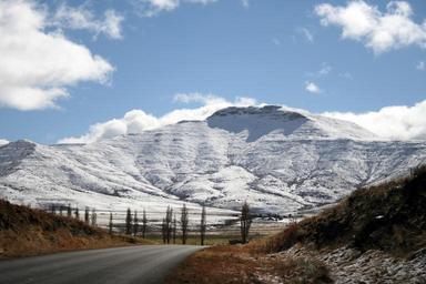 Keywords: south africa eastern cape mountains snow winter peaks road horizon trees