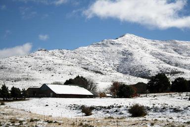 Keywords: south africa eastern cape mountains snow winter peaks farm house