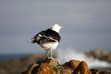 Keywords: south africa kynsna heads seascape rocks seagull waves feathers ruffled sea water nature outdoors landscape stone horizon gull ocean environment cloud