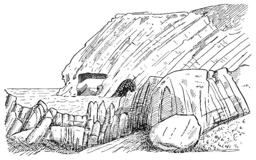 | Keywords: South African Geology - Schwarz - 1912 Fig 17.png en Figure from South African Geology - Schwarz - 1912 Page 80 Fig 17 ” Arch and Cave along Knysna Coast near Seal Point Height of cliffs 600 feet Plain of marine denudation in course of formation High water 1912 File South African Geology - Schwarz - 1912 djvu Schwarz Ernest Hubert Lewis 1873-1928 other versions PD-old-70-1923 South African geology book | ||||
