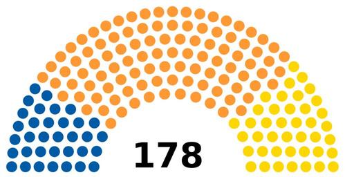 Keywords: South African House of Assembly 1989.svg 005BA6 Democratic Party 34 seats FF9933 National Party 103 seats FFD700 Conservative Party 41 seats 2016-02-05 own MB298 other versions cc-zero Election apportionment diagrams of South Africa