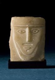 | Keywords: South Arabian - Bearded Man - Walters 2136.jpg This almost flat stylized head is carved in raised and sunken relief Straight T-shaped ridges represent the eyebrows and nose; a deeply carved dimple defines the chin A moustache and circular beard indicate that the person represented is male Elements of the face such as the eyes and mouth were originally painted Such almost two-dimensional head stelae are typical of the late Formative 7th-5th century BC and early Classical Period 4th-3rd century BC of South Arabian art century 6 3 BC calcite-alabaster cm 15 13 6 accession number 21 36 76475 Sale Sotheby's London May 18 1970 lot 64 Giraud and Carolyn Foster Baltimore May 18 1970 by purchase Walters Art Museum Gift of Giraud and Carolyn Foster 2007 Faces of Ancient Arabia The Giraud and Carolyn Foster Collection of South Arabian Art The Walters Art Museum Baltimore 2008 place of origin Arabian Peninsula Walters Art Museum license South Arabian art in the Walters Art Museum Art of Ancient Yemen 6th-century BC works Media contributed by the Walters Art Museum needs category review |