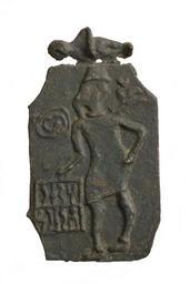 | Keywords: South Arabian - Plaque of a Man - Walters 20071735.jpg This unique plaque depicts a man dressed in a thigh-length costume and shoes He wears headgear used by hunters and traders A serpent is coiled in front of his face and a bird perhaps an eagle with outspread wings emerges from behind his shoulders Serpents and eagles in South Arabian art are associated with the sun and moon On top of the plaque a female figure wearing a long sheath-like dress is oriented horizontally and may represent a worshiper Text beside the man contains the given name Heshfer or Heshqer of the Serben clan century 2 1 BC bronze cm 17 8 10 0 5 accession number 2007 17 35 76494 Portobello Road Market London Giraud and Carolyn Foster Baltimore between 1963 and 1964 by purchase Walters Art Museum Gift of Giraud and Carolyn Foster 2007 Transliteration Hsfr or Hsqr Srbn Translation Heshfer or Heshqer of the Serben clan Faces of Ancient Arabia The Giraud and Carolyn Foster Collection of South Arabian Art The Walters Art Museum Baltimore 2008 place of origin Arabian Peninsula Walters Art Museum license South Arabian art in the Walters Art Museum Art of Saudi Arabia Media contributed by the Walters Art Museum needs category review |