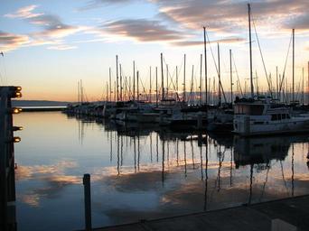 Keywords: south beach marina marina dawn clouds sailboats reflection bay sky harbor skyline coast ship outdoors dock lights masts