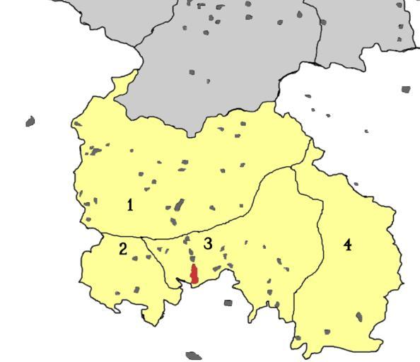 | Keywords: South Ossetia rayons and capital.png en Rayons yellow numbered and the capital city red of the unrecognized Republic of South Ossetia The borders according to the Soviet ones Rayons 1 Dzau rayon 2 Znaur rayon 3 Tskhinval rayon 4 Leningor rayon The light grey territory to the north is North Ossetia Alania Republic of the Russian Federation; dark grey are some of the towns and villages ru Районы жёлтые п онуме ованные и столица к асная неп изнанного госуда ства ru Южная Осетия 1 Дзауский айон 2 Знау ский айон 3 Цхинвальский айон 4 Ленинго ский айон Се ым залита те ито ия Севе ной Осетии в составе РФ Тёмно-се ые пятна некото ые населённые пункты Locator maps of South Ossetia 2006-04-04 own assumed Slavik IVANOV |