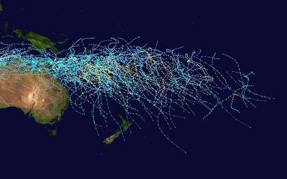 | Keywords: South Pacific cyclone tracks 1980-2005.jpg right border 0 cellspacing 0 cellpadding 0 style background transparent;text-align center - 7 nowrap nowrap <small>Saffir-Simpson Hurricane Scale</small> - background-color 5ebaff;width 1 8em title Tropical Depression 0 “38 mph 0 “62 km/h TD background-color 00faf4;width 1 8em title Tropical Storm 39 “73 mph 63 “117 km/h TS background-color ffffcc;width 1 8em title Category 1 74 “95 mph 119 “153 km/h 1 background-color ffe775;width 1 8em title Category 2 96 “110 mph 154 “177 km/h 2 background-color ffc140;width 1 8em title Category 3 111 “130 mph 178 “209 km/h 3 background-color ff8f20;width 1 8em title Category 4 131 “155 mph 210 “249 km/h 4 background-color ff6060;width 1 8em title Category 5 > 156 mph > 250 km/h 5 This map shows the tracks of all Tropical cyclones in the South Pacific Ocean from 1980 to 2005 The points show the locations of the storms at six-hourly intervals and use the color scheme shown above from Saffir-Simpson Hurricane Scale Created using User jdorje/Tracks by Nilfanion on 2007-02-19 Background image from Image Whole world - land and oceans jpg NASA The best track information is from the Joint Typhoon Warning Center http //metocph nmci navy mil/jtwc/best_tracks/ Cumulative tropical cyclone tracks |