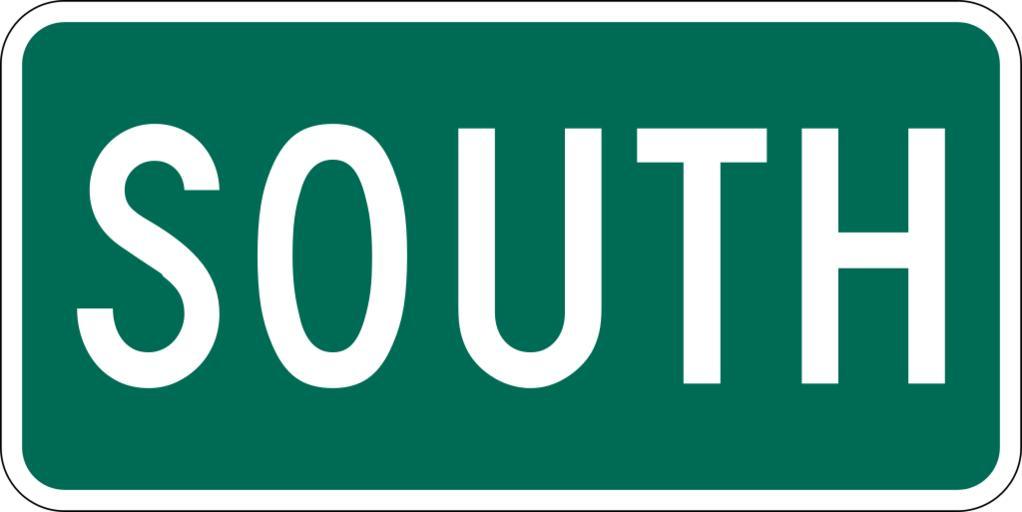 | Keywords: South plate small green.svg 600 mm by 300 mm 24 in by 12 in south plate with small letters made to the specifications of the http //mutcd fhwa dot gov/SHSm/Guide pdf 2004 edition of Standard Highway Signs sign M3-3 Uses the http //www triskele com/fonts/index html Roadgeek 2005 fonts United States law does not permit the copyrighting of typeface designs and the fonts are meant to be copies of a U S Government-produced work anyway Colors are from http //mutcd fhwa dot gov/kno-colorspec htm Pantone Green 342 converted to RGB by http //www reeddesign co uk/test/pantone2rgb html The outside border has a width of 1 1 mm and a color of black so it shows up; in reality signs have no outside border own Ltljltlj User Ltljltlj/Template M3-3 - Cardinal Direction Auxiliary Diagrams of green and white road signs |