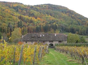 Keywords: south tyrol landscape building mountains forest trees woods sky clouds field autumn fall vineyard crop nature outside country countryside rural