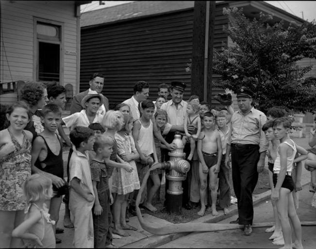 | Keywords: SouthBroadSummerShowers1940HydrantCrowd.jpg New Orleans 1940 For the fifth consecutive year the WPA recreation project begins its summer showers program Boys and girls of New Orleans will cool off at seventeen locations in the city The formal opening of the program shown here was held at the fire station at 231 South Broad Street Lieutenant Bat Otillio; Pipeman Richard Cochran Engine House 26 Hook Ladder 9; and Barbara Lee Grager age 2 Exterior The Summer Showers Program provided sprays of water at fire stations for children to play and cool off in Works Progress Administration photo via http //www nutrias org/~nopl/photos/wpa/wpa36 htm 1940-07-01 Uncredited WPA photographer PD-USGov 1940 in New Orleans Broad Avenue New Orleans Children of the United States Fashion in 1940 Mid City New Orleans 1940s swimwear Fire hydrants in New Orleans Firefighters in Louisiana Water curtains |