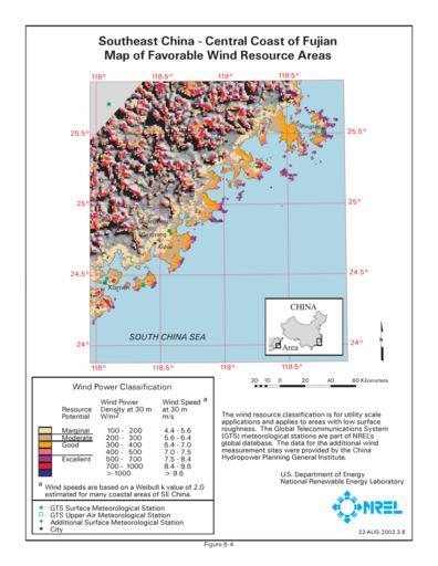Keywords: Southeast China - Central Coast of Fujian - Map of Favorable Wind Resource Areas.png en Southeast China - Central Coast of Fujian - Map of Favorable Wind Resource Areas 2002-08-22 http //www nrel gov/wind/international_wind_resources html National Renewable Energy Laboratory NREL other versions PD-USGov Uploaded with UploadWizard Wind power in China Mean wind speed maps |