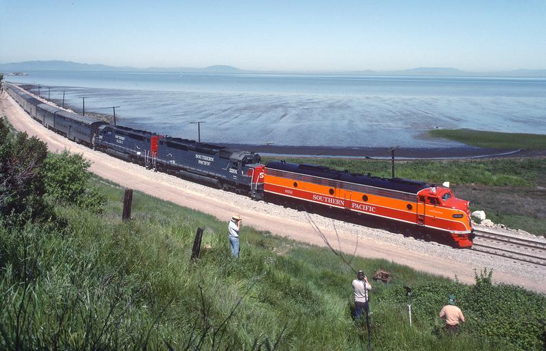 <b> A Roger Puta Photograph</b> southernpacific Southern Pacific Special - 19 Photos (30854702451).jpg  en Roger Puta took this photo near or in Pinole CA <br> The Southern Pacific ran two passenger specials from San Jose to Sacramento and return on the weekend of April 27 and 28 1985 One on each day On Sunday 6051 remained in Sacramento to become an artifact at the California State Railroad Museum I'm pretty sure Roger shot the Saturday morning train to Sacramento He put no captions on these slides Some of the locations have been positively identified by landmarks A few are a little soft <br> The power was E9A 6051 and commuter SDP45s 3201 and 3207 <br> <b> A Roger Puta Photograph</b> 2016-11-12 13 38 22 https //www flickr com/people/129679309 N05 railfan 44 https //www flickr com/photos/129679309 N05/30854702451/ User Fæ/Flickr API Puta's Southern Pacific Employee's Special April 1985 Puta's UP and pre-Union Pacific Photos train railroad railfans fallen flags EMD United States Locomotive Photographers Western Railroads American Rails North American Railroads E-Units and F-Units Railroad Photographer USA/Canada Trains of the U S A U S Railfan Pictures All Locomotives Railroad Picture Hall of Fame Classic EMD Power EMD Gallery California Railfans Western US Railroad Photography Railroad Sightings Railroad Photography Junction Southern Pacific Cc-zero RogerPuta Photographs by Roger Puta Photos uploaded from Flickr by Fæ using a script 1985 in rail transport in the United States |