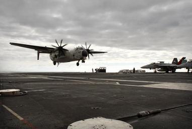 | Keywords: vinson cvn70 carrier c-2 c2 greyhound cod landing outdoor airplane aircraft vehicle On March 7, 2010 U.S. Ambassador to Uruguay David D. Nelson and several Uruguayan officials were invited aboard the carrier USS Carl Vinson to observe a joint exercise demonstration 50 nm off the coast of Punta del Este. Photo: The C-2 aircraft transporting U.S. Ambassador David D. Nelson and other VIP guests arrives aboard the carrier. [U.S. Embassy photo by Vince Alongi / Copyright info] On March 7, 2010 U.S. Ambassador to Uruguay David D. Nelson and several Uruguayan officials were invited aboard the carrier USS Carl Vinson to observe a joint exercise demonstration 50 nm off the coast of Punta del Este. Photo: The C-2 aircraft transporting U.S. Ambassador David D. Nelson and other VIP guests arrives aboard the carrier. [U.S. Embassy photo by Vince Alongi / Copyright info] |